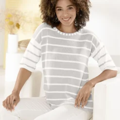 Pulli in Feinstrick in Flieder-Rosé-Multicolor und in Größe 38.